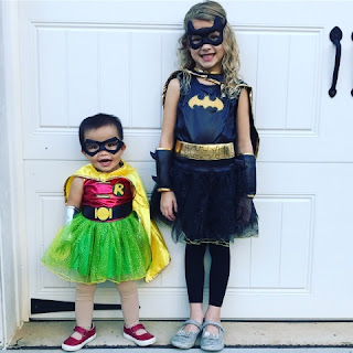 Anywho. I had hoped I could get the kiddos to dress in theme this year, and they complied - as super heroes! I have to admit, seeing my girls as Batmangirl and Robin made my heart sing - sisters who will have each other's back forever. <3